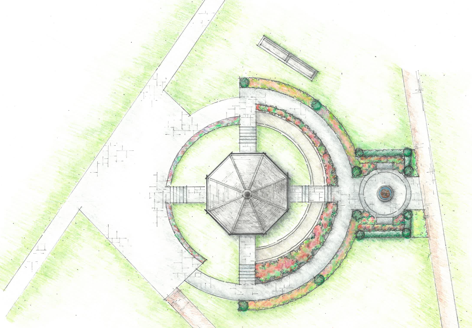 Inspired by the lasting impressions Mayor Frank Zullo left on the Norwalk community, this custom water feature embodies the metaphor of the ripple effect created by a drop of water, ever expanding from it’s origin. A circular piece of granite, carved with concentric rings that mimic the ripples, is ”floating” in the granite bowl. Water bubbles gently from the center and washes over the smooth circular edge, quietly spilling into the bowl. This fountain becomes the contemplative centerpiece in the Frank Zullo Memorial Rose Garden.