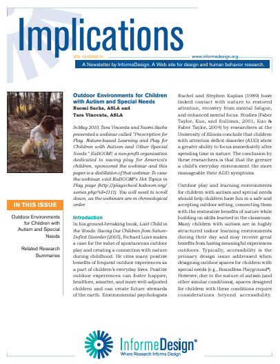2011 Implications Article: Outdoor Environments for Children with Autism and Special Needs